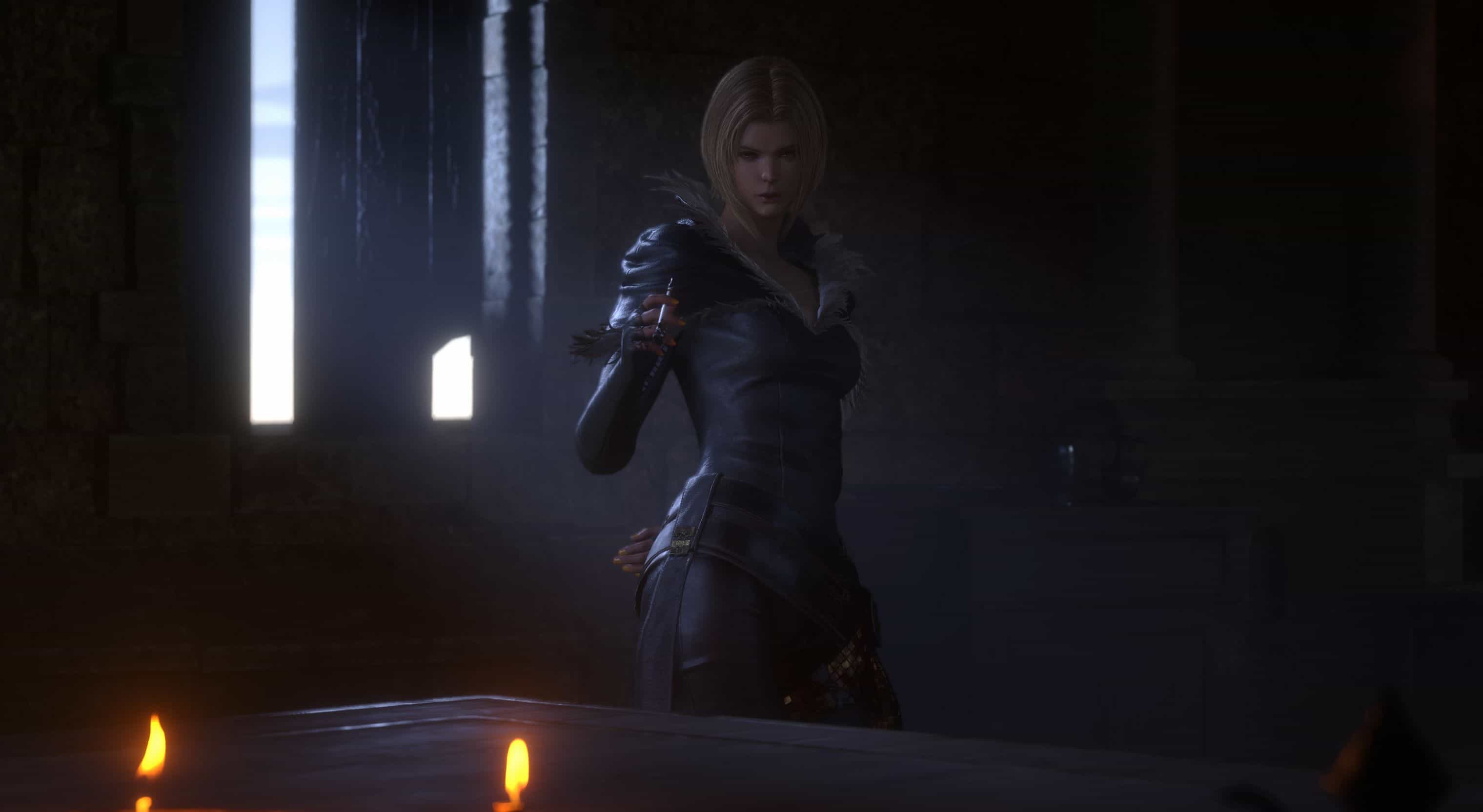 In this battle, as well as several cinematic scenes where she ends lives, Benedikta wields a slender sword, reminiscent of a rapier but edged.